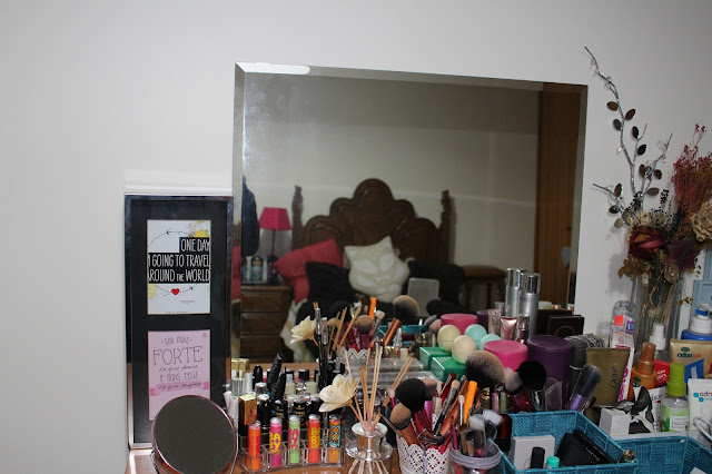 IKEA Espelho. Farta de me maquilhar na casa-de-banho decidi montar o meu estaminé de maquilhagem num quarto cá em casa para poder ter mais luz natural, precisava era de um espelho e encontrei este completamente simples como queria em promoção a 6,99€ no Ikea (antes custava 9,99€), ainda estou à espera que o meu pai o ponha na parede, mas nada, ando eu toda curvada a maquilhar-me todos os dias (é favor ignorar o que para ali vai de tralha, ando ainda em fase de construção).